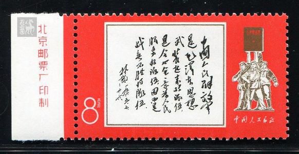 1967-12-26 发行量 1000万套 全套面值 0.08元,全套1枚,市场价350元。林彪为中国人民解放军海军首次学习毛主席著作积极分子代表大会题词。
