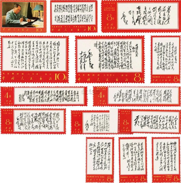 1967-10-1 发行量 700万套 全套面值1.10元,全套共14枚,市场价近30000元左右,是毛体书法的完美展示,是近代以来首套书法邮票。