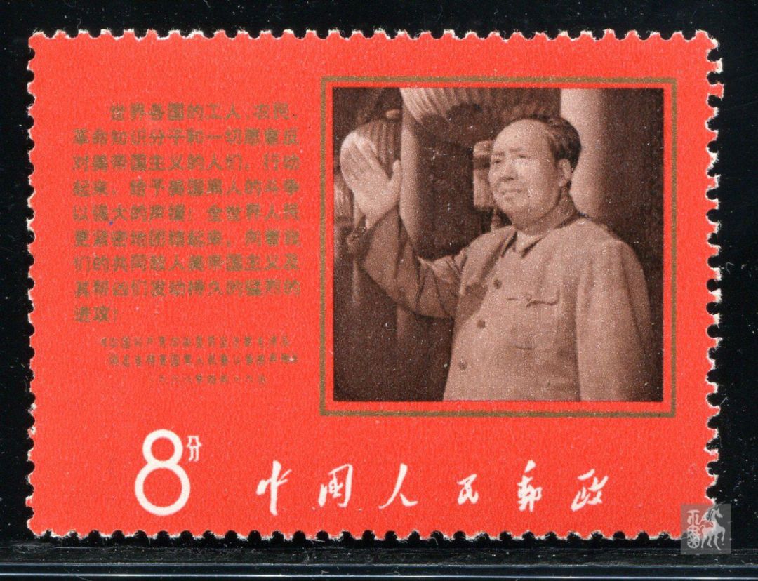 1968-5-31 发行量 1500万套 全套面值 0.08元,全套1枚,邮票主图内容:“世界各国的工人、农民、革命知识分子和一切愿意反对美帝国主义的人们,行动起来,给予美国黑人的斗争以强大的支援!全世界人民更紧密地团结起来,向着我们共同敌人美帝国主义及其帮凶们发动持久的猛烈的进攻!”市场价是3500元。