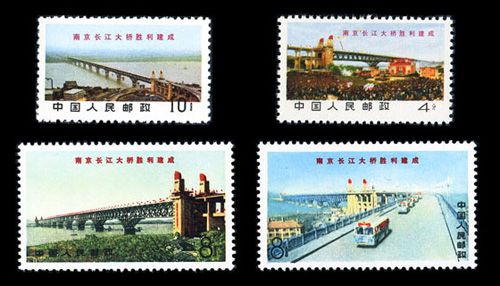 1969-5-1 发行量 800万套 全套面值 0.30元。全套4枚,市场价880元左右60年代,完全由中国人自力更生建造的南京长江大桥,曾以“最长的公铁两用桥”被载入《吉尼斯世界记录大全》。是文革票中的唯一以社会建设成就为题材的邮票。从此开始使用印刷体中国人民邮政。